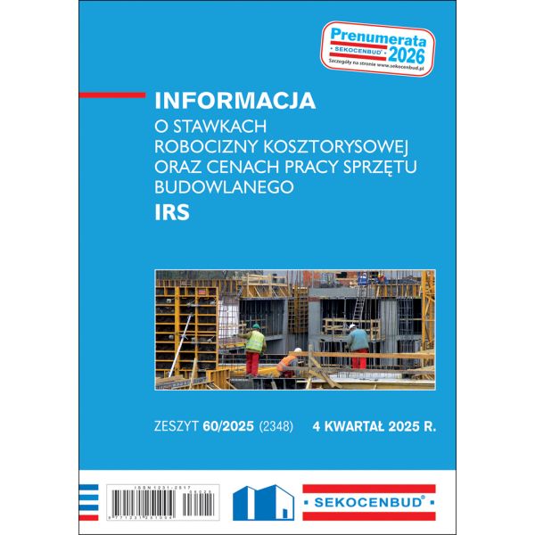 Już są dostępne Informacje kwartalne Sekocenbud za 4 kwartał 2025 r. W pierwszej kolejności ukazały się zeszyty IMB, IRS, IMI, IME. Pod koniec przyszłego tygodnia powinna być dostępna wersja cennika na płycie.